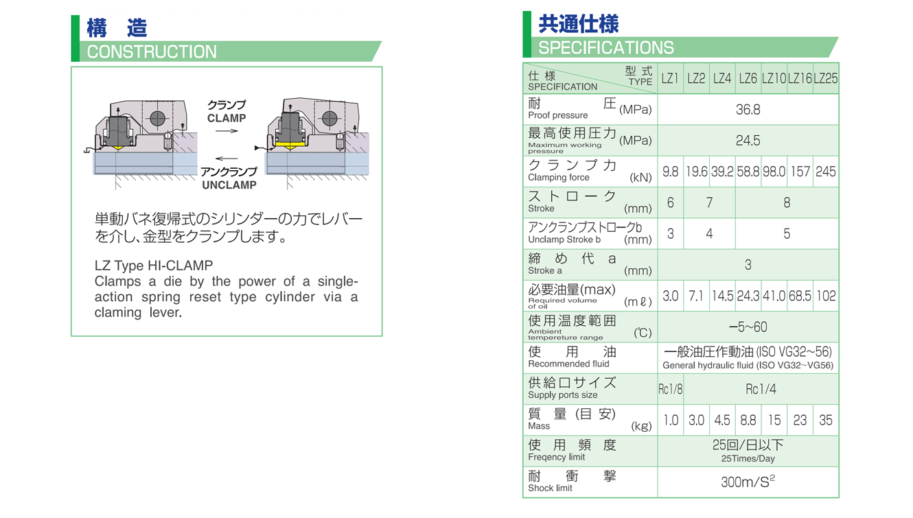 夹紧器(Clamp,ランプ) | LZ1、LZ2、LZ4、LZ6、LZ10、LZ16、LZ25 | LZ系列LZ□-T型 |