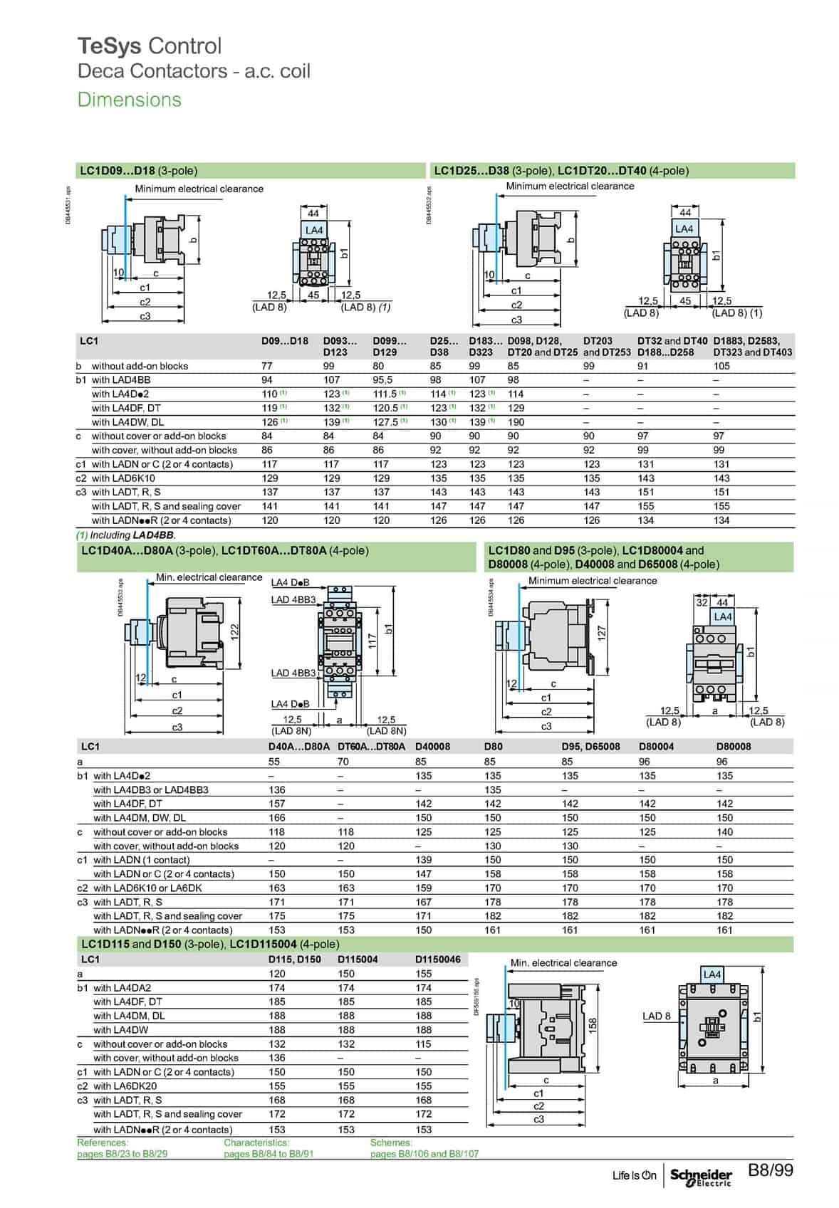 Schneider TeSys Deca Contactors – a.c. coil Demensions
