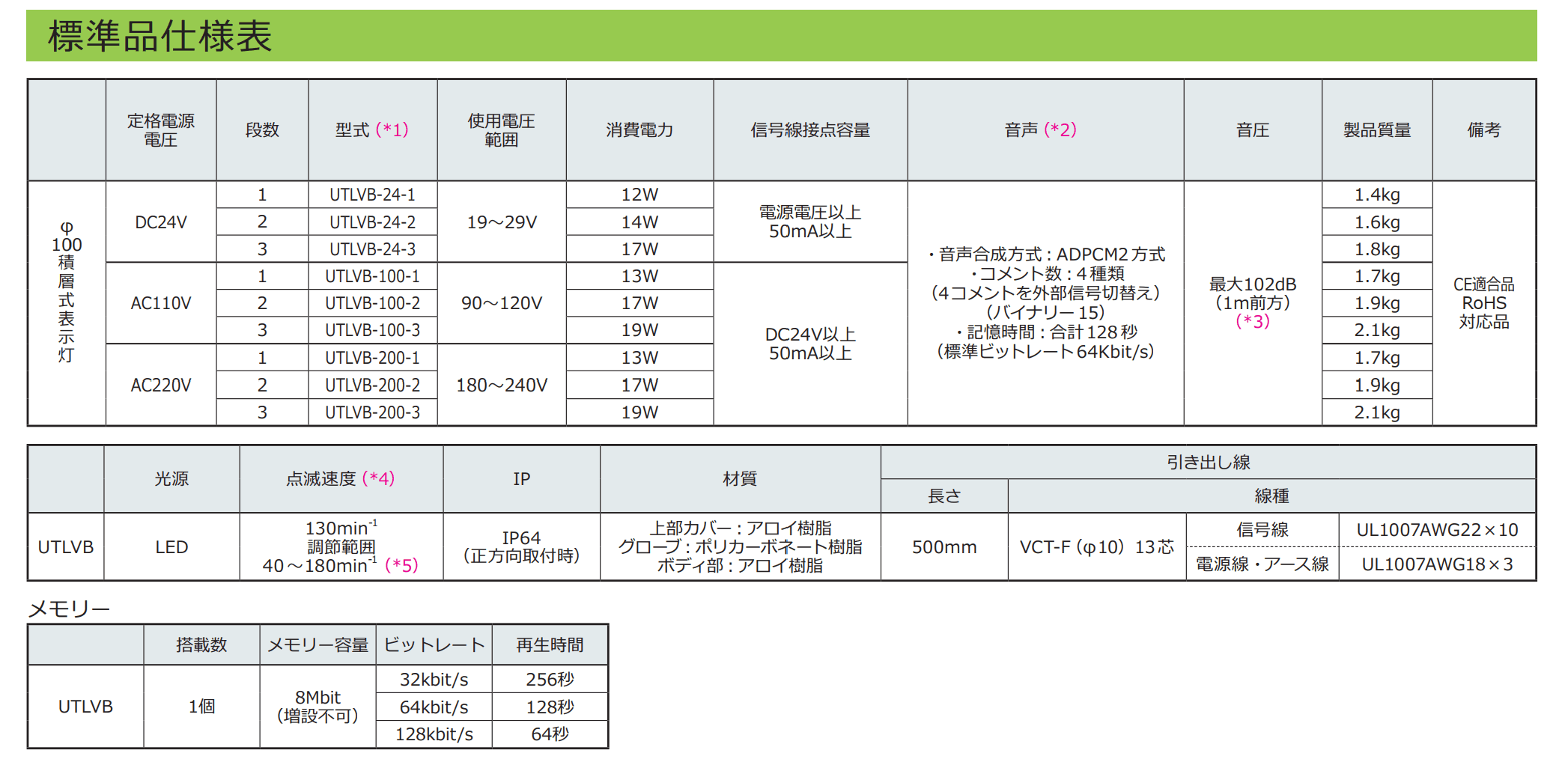 多层信号灯(積層式表示灯) | UTLVB-24-1、UTLVB-24-2 、UTLVB-24-3 、UTLVB-100-1、UTLVB-100-2 、UTLVB-100-3 、UTLVB-200-1、UTLVB-200-2 、UTLVB-200-3 | UTLVB系列 |
