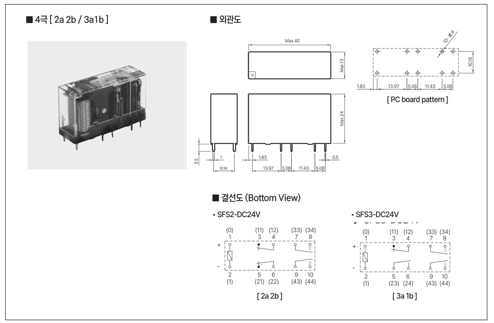 | SFS3-DC24V | 24VDC | 4Pole | 3a1b | SFS4-SW-D24 SFS4-SW-C1 | DINRail (Chanel) |