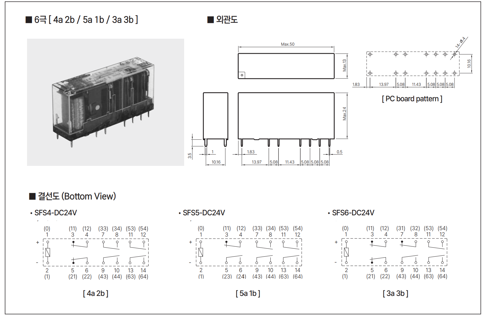 | SFS5-DC24V | 24VDC | 6Pole | 5a1b | SFS6-SW-D24 SFS6-SW-C1 | DINRail (Chanel) |