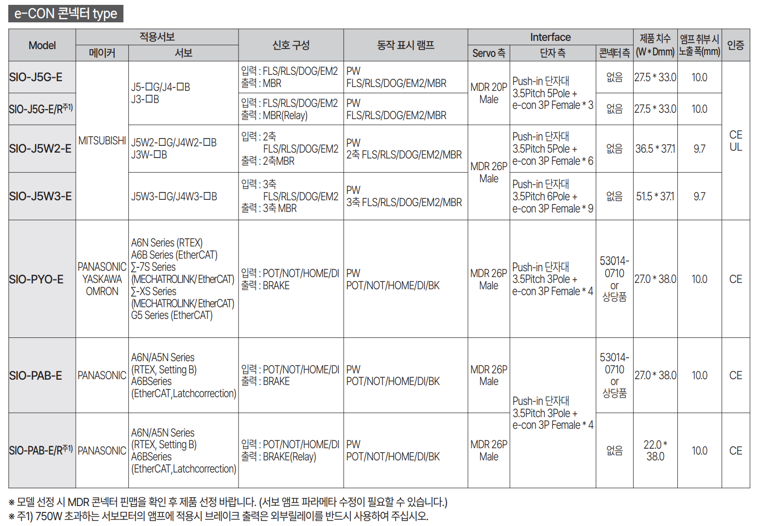 - e-CON连接器(SIO-J5G-E、SIO-J5G-E/R、SIO-J5W2-E 、SIO-J5W3-E 、SIO-PYO-E、SIO-PAB-E 、SIO-PAB-E/)
