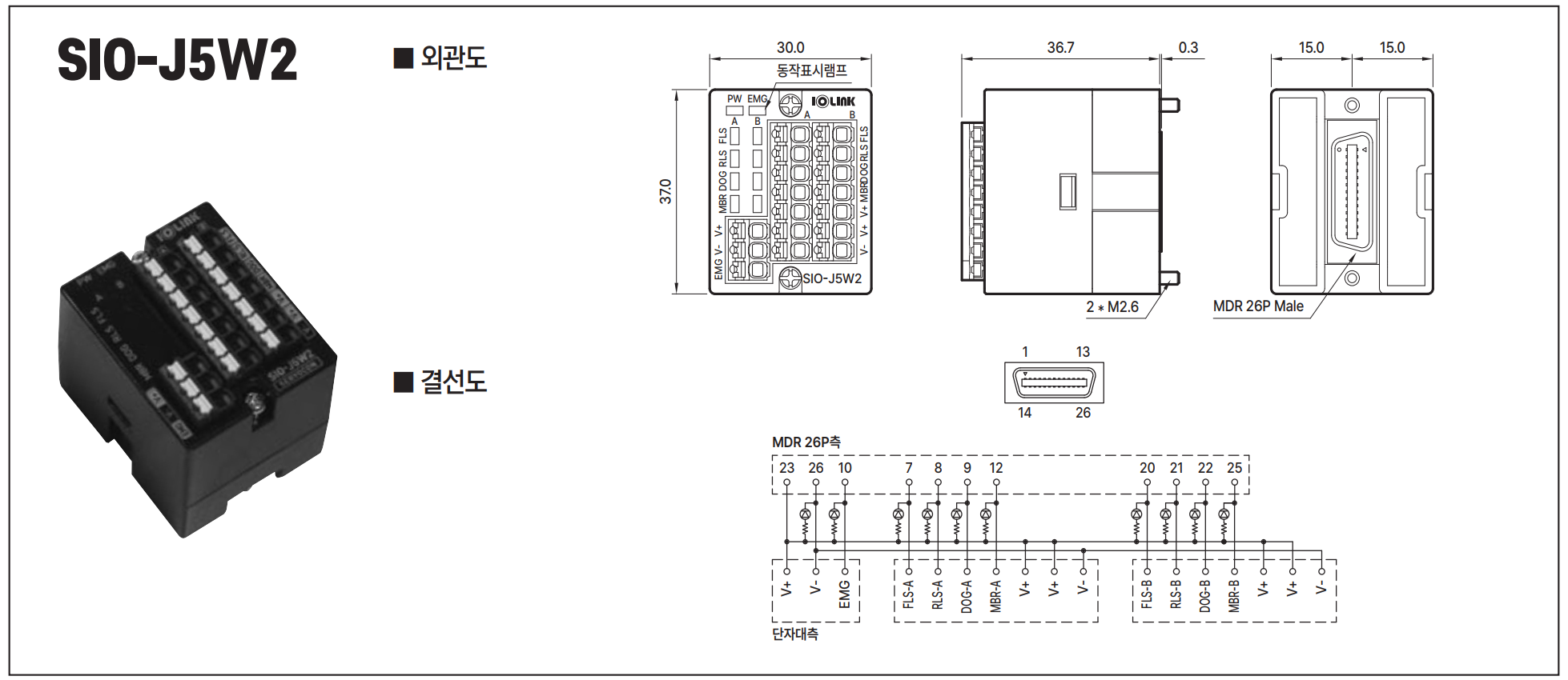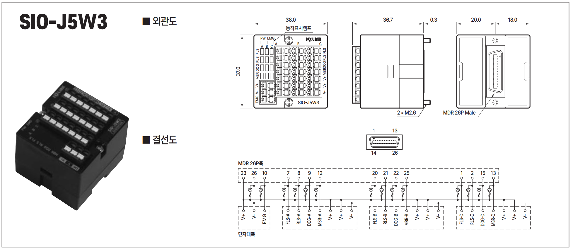 • 配备输入/输出动作指示灯,便于确认输入输出状态-(SIO-20P/SIO-26P/SIO-36P型号无指示灯)