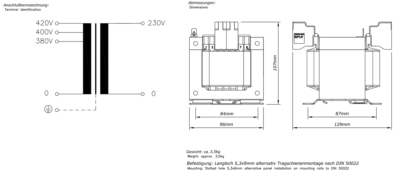 | STE 250/4/23 | 380/400/420 | 230 | 250 | 96/107/129 | 3.5 |