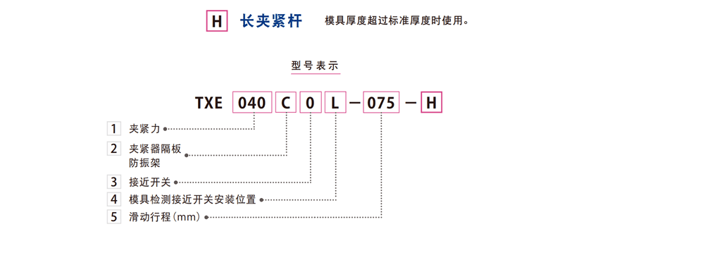 模具夹紧器 | 长夹紧杆 | TXE□-H | |