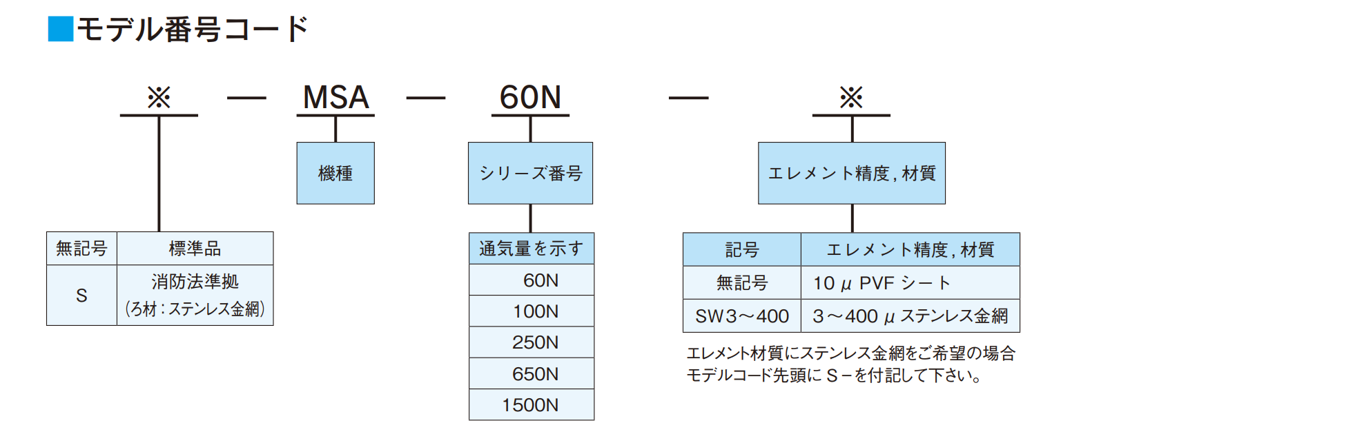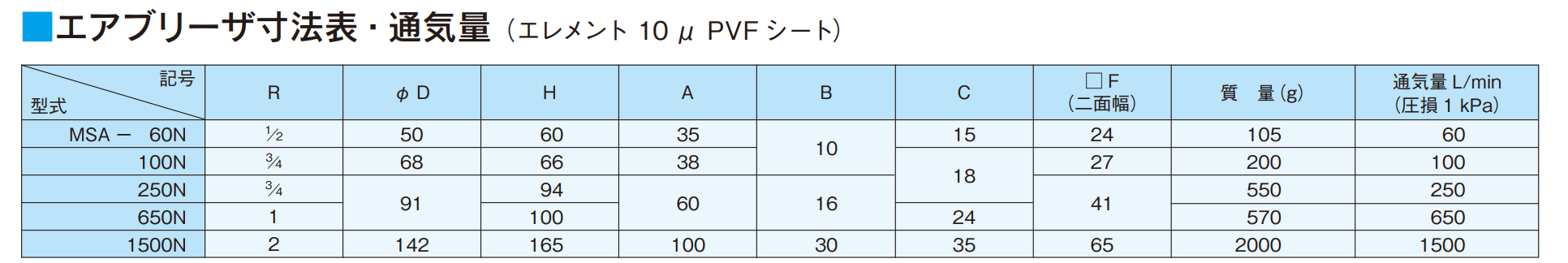| 呼吸过滤器(エアブリーザ,Air breather) | MSA-60N、MSA-100N、MSA-250N、MSA-650N | MSA系列 |