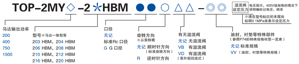 TOP-2MV750-210HBMVD | 750W,三相,有溢流阀<泵外部回流式> |