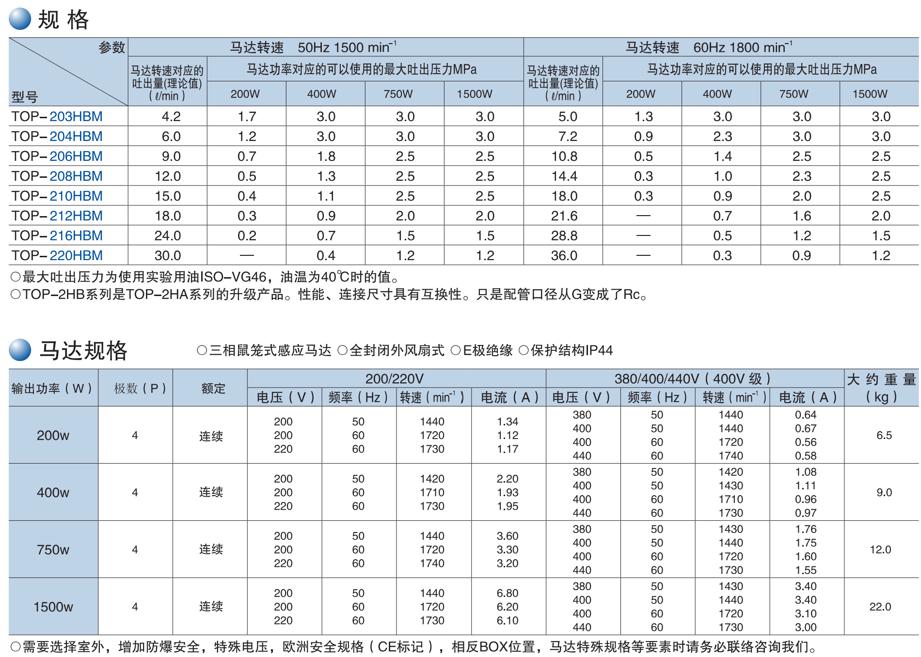 TOP-2MY200-203HBMVB | 200W,三相,有溢流阀 |