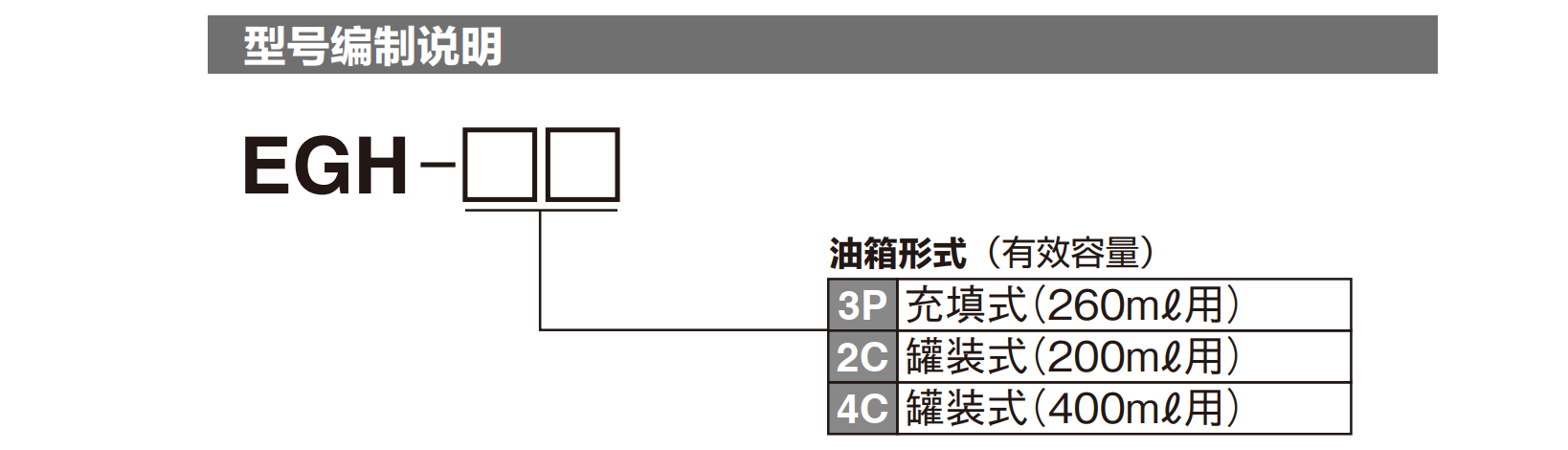 | 油脂泵 | 主配管脱压动作型手动油泵 | EGH-3P | 103783 | 260ml | 1400 |