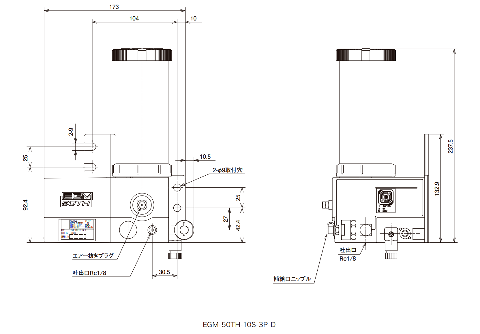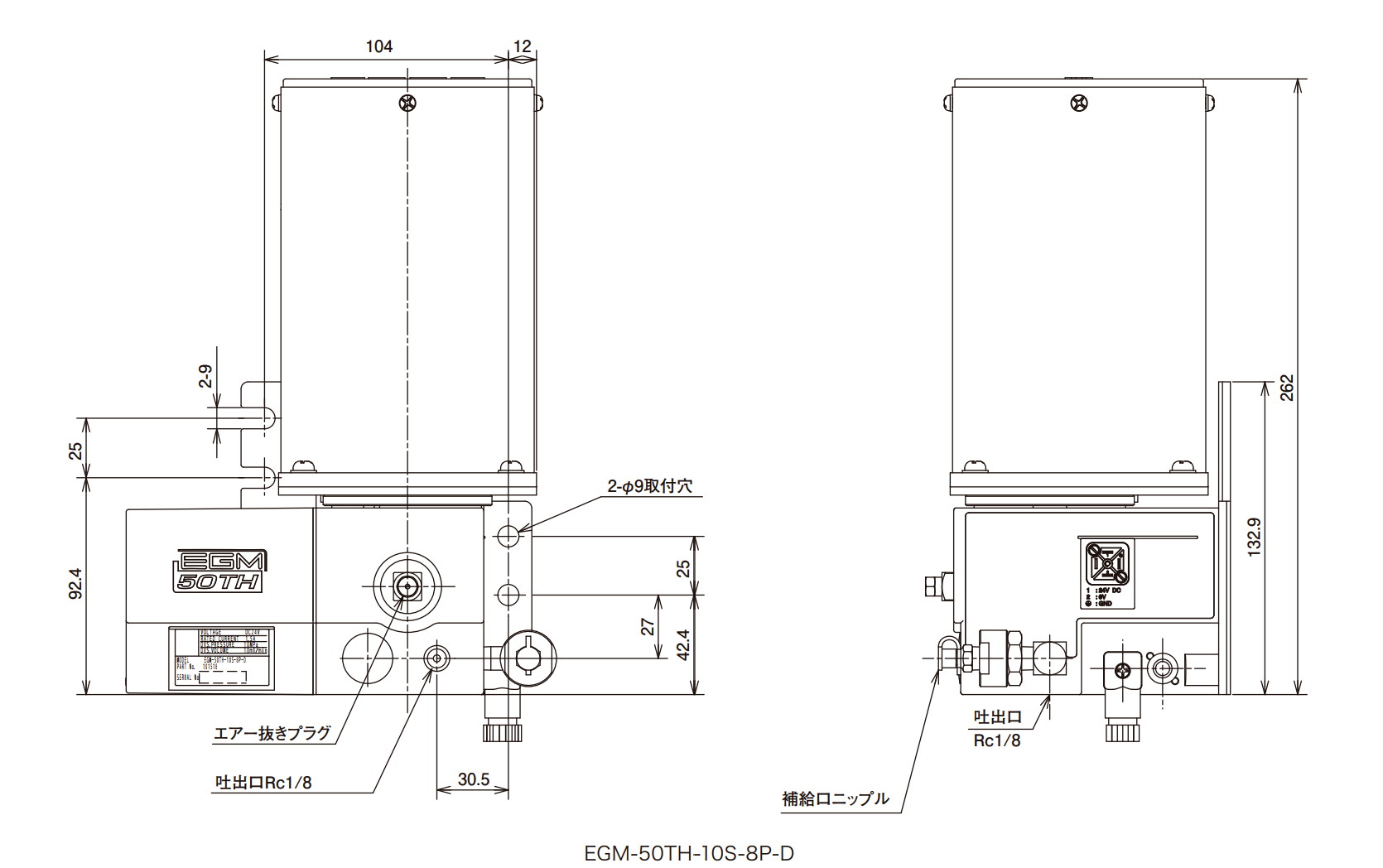 | 主配管脱压动作型电动油脂泵(主配管脱圧方式自動潤滑ポンプ) | EGM-50TH-10S-2C-D、EGM-50TH-10S-3P-D、EGM-50TH-10S-4C-D、EGM-50TH-10S-7C-D、EGM-50TH-10S-7C-LD 、EGM-50TH-10S-7C-LFBD 、EGM-50TH-10S-8P-D | EGM-50TH-10S型 |