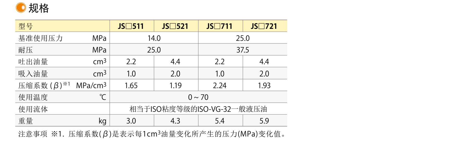 | 弹簧式蓄能器(Accumulator,アキュームレータ) | JSA711-0A、JSA711-0B、JSA711-0C、JSA711-0G、JSA721-0A、JSA721-0B、JSA721-0C、JSA721-0G etc. | JS系列JSA、JSB型 |