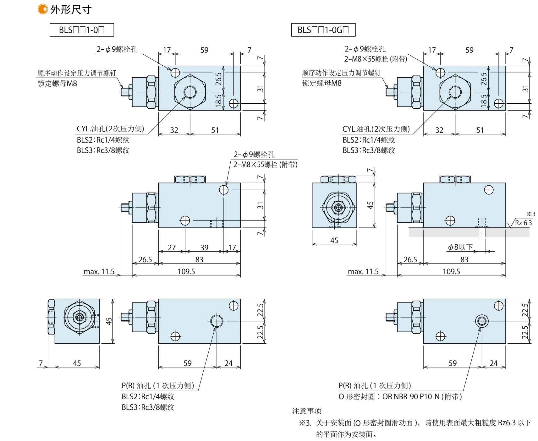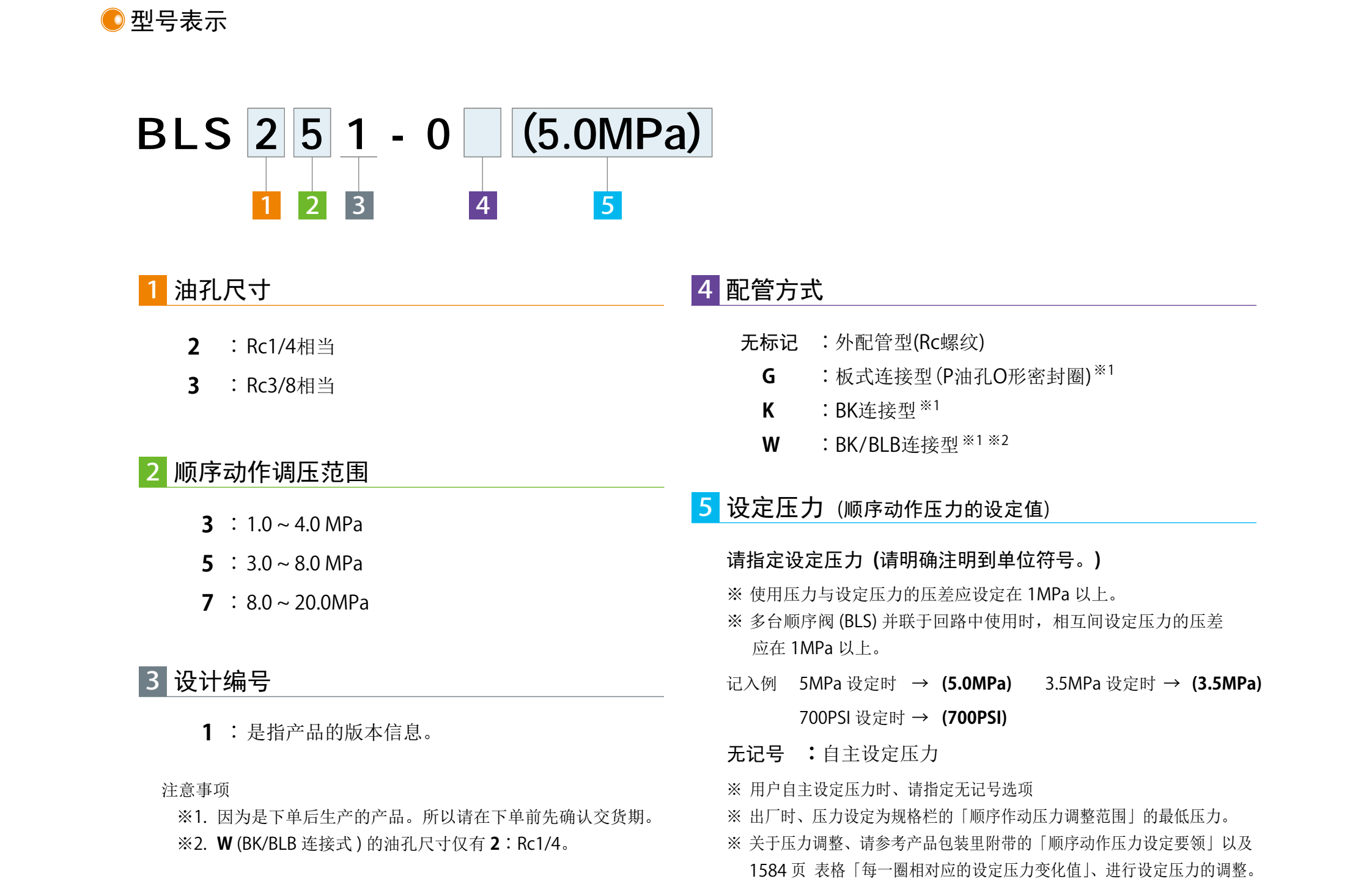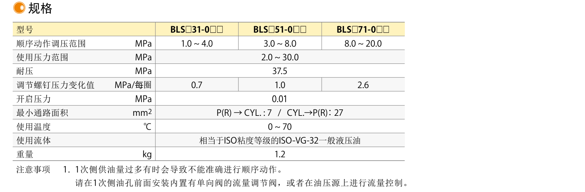 顺序阀(シーケンスバルブ) | BLS251-0G(5.0MPa)、BLS251-0K(5.0MPa)、BLS251-0W(5.0MPa) | BLS系列 |