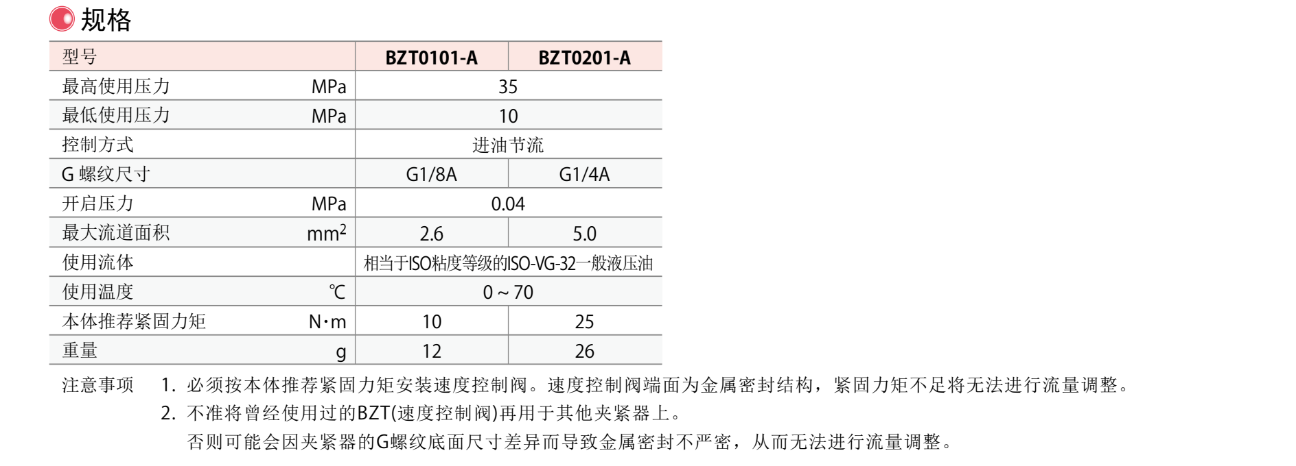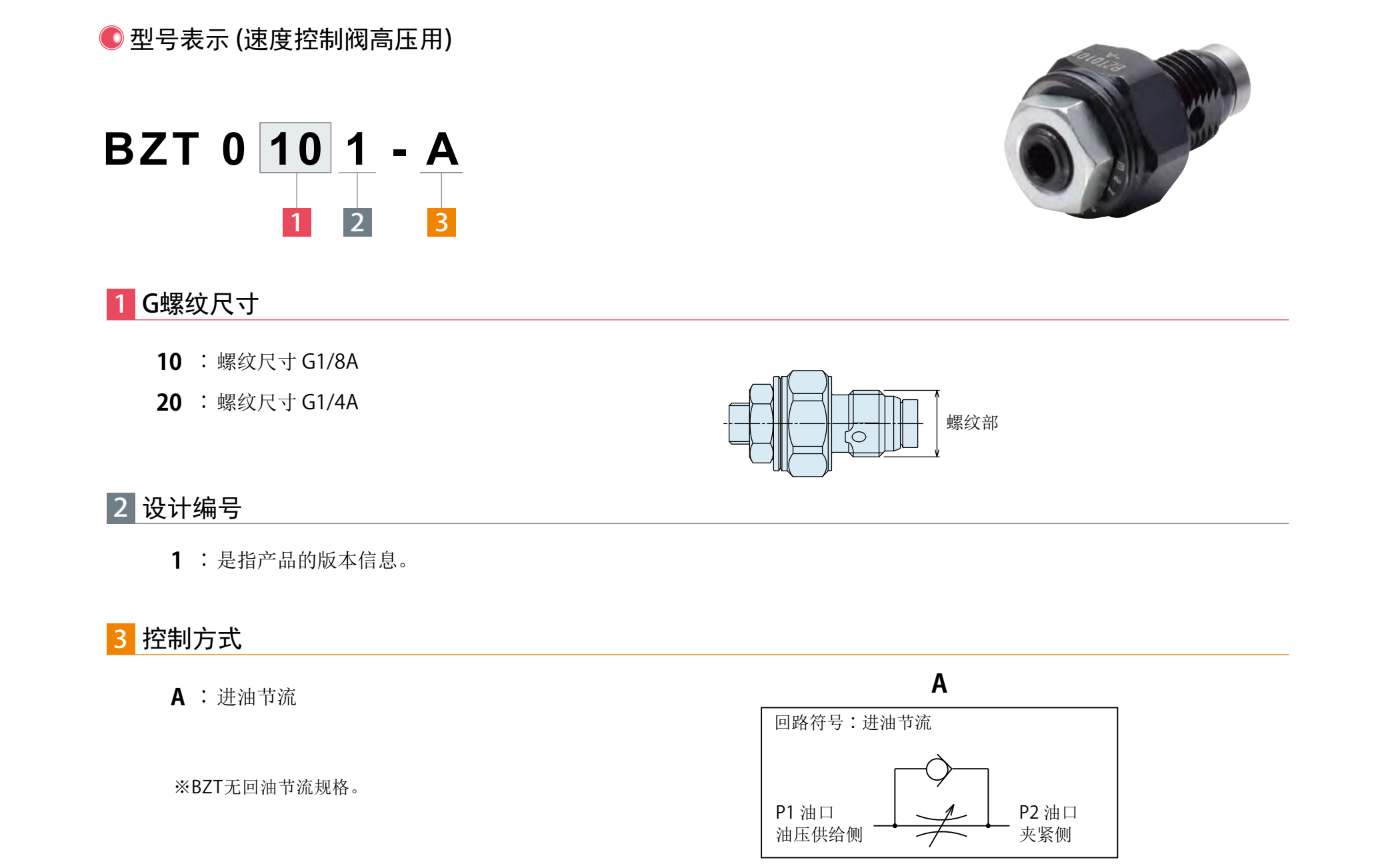 速度控制阀(附带排气功能) /スピードコントロールバルブ (エア抜き機能付)【高圧用】 | BZT0101-A、BZT0201-A | BZT系列 |