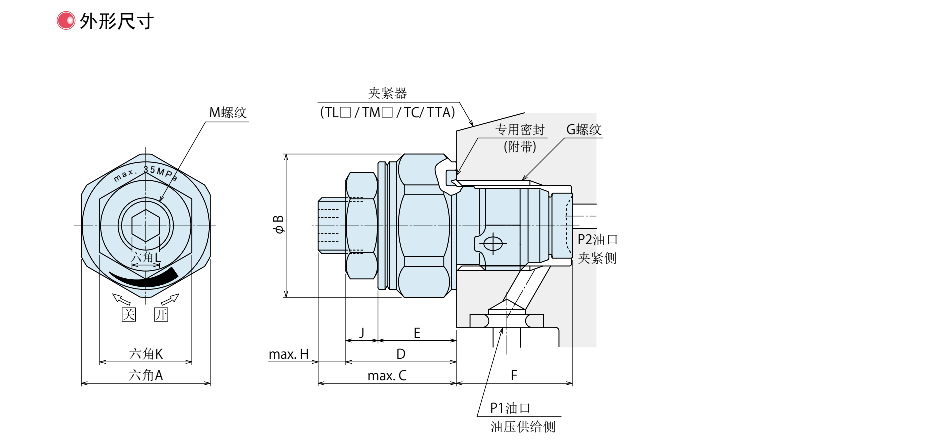 • 控制阀是可直接安装于配管方式:C型的夹紧器 / 支撑器上的G螺纹专用的速度控制阀•排气阀•G螺纹堵头•顺序阀。