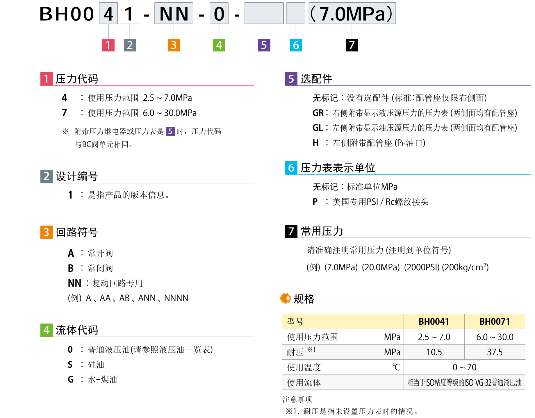 BH0041-NN-0GR(7.0MPa)、BH0071-NN-0GR(7.0MPa)