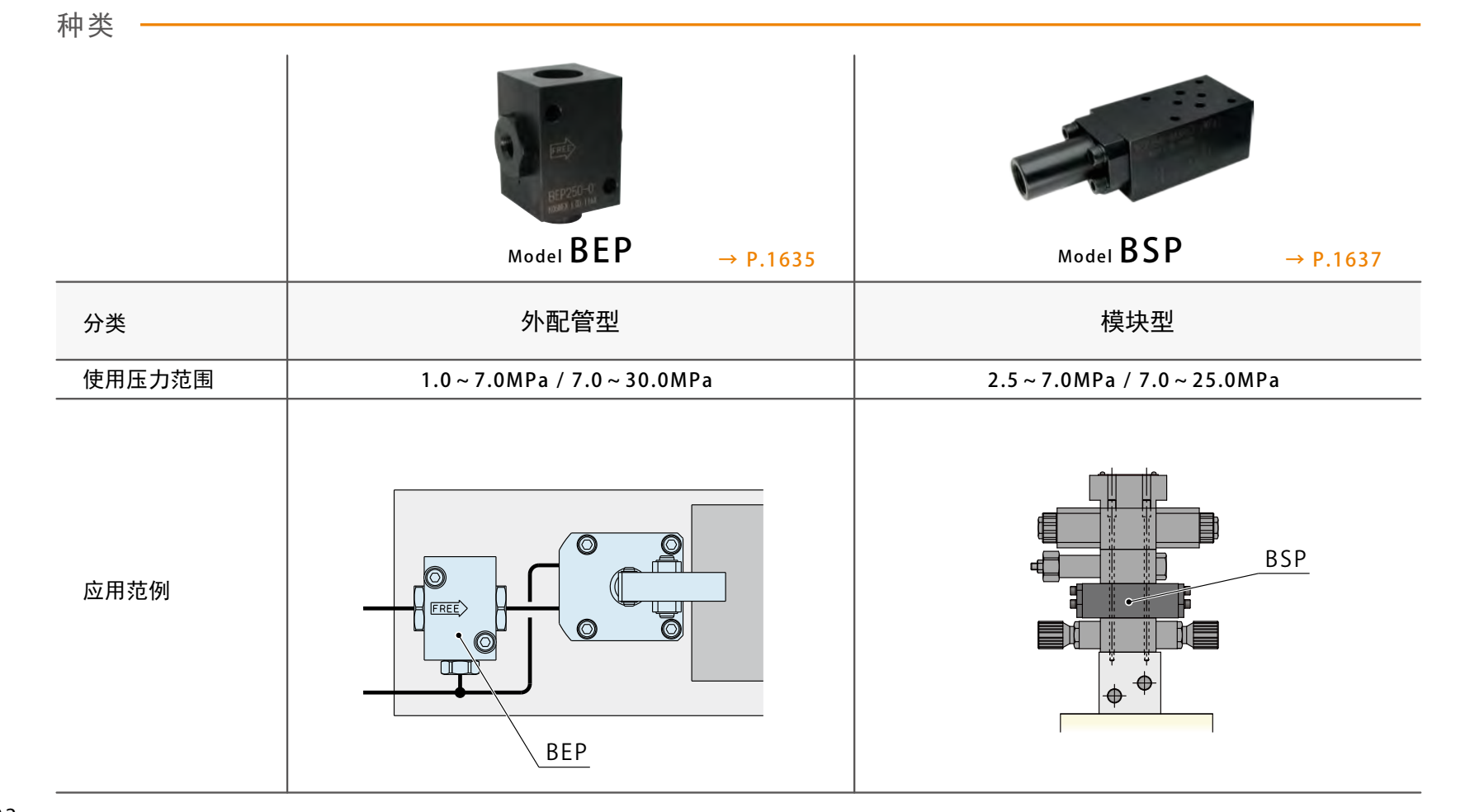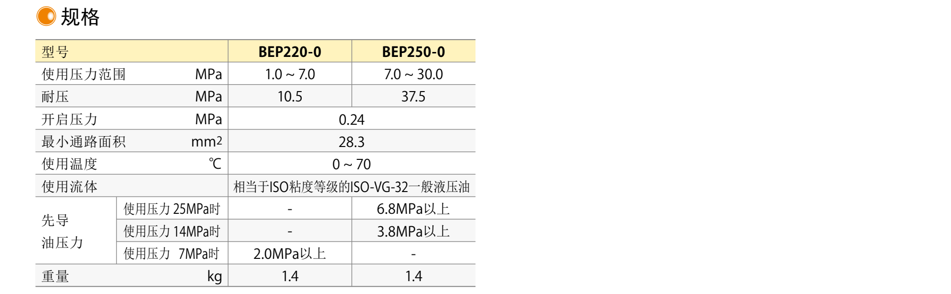 无泄漏先导控制单向阀/ノンリークパイロットチェックバルブ | BEP220-0、BEP250-0 | BEP系列 |