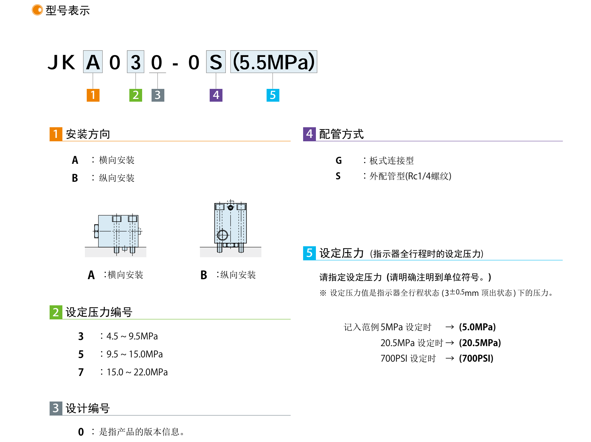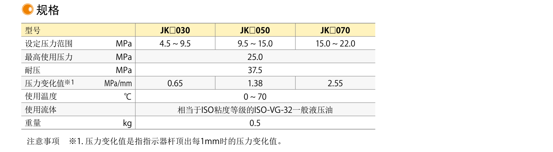 压力指示器(プレッシャインジケータ) | JKA030-0S(5.5MPa)、JKB030-0S(5.5MPa) | JK系列 |