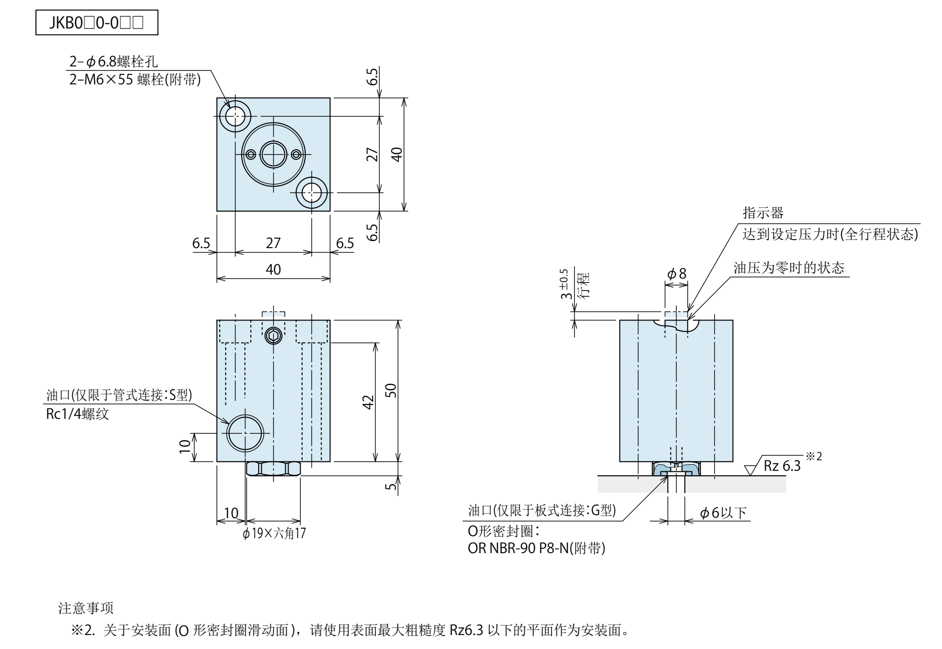JKA050-0S | JKB050-0S | 外配管型(Rc1/4螺纹) |