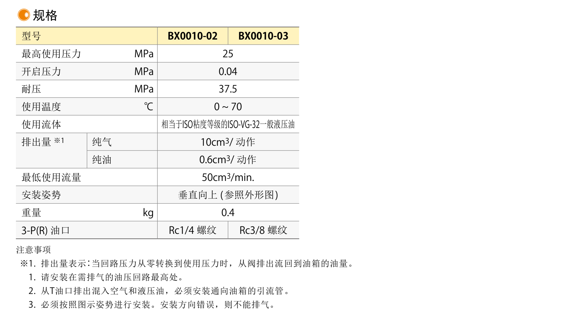 自动排气阀(オートエアブリードバルブ) | BX0010-02、BX0010-03 | BX系列 |