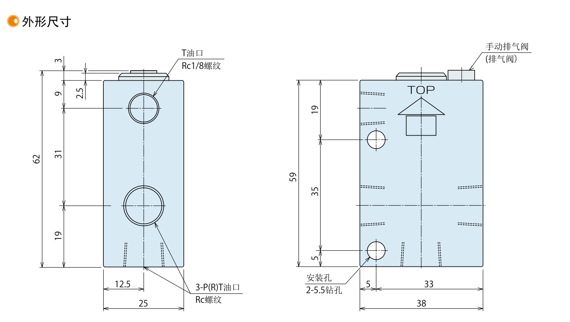 • 自动排气阀安装在油路的最高处,通过阀自动反复开启、关闭,以排除混入回路中的空气。