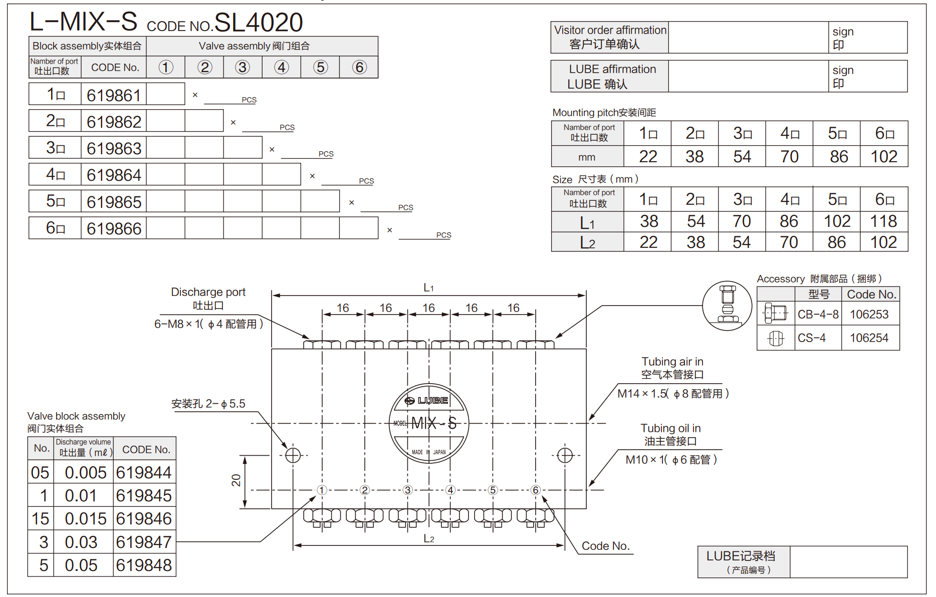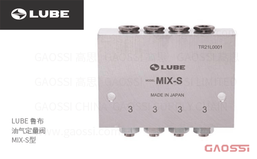 高思(GAOSSI®)专业供应日本鲁布(Lube ,リューベ)品牌油气定量阀(オイルエアー定量バルブ)MIX型(MIX-1 、MIX-3 、MIX-5 、MIX-10 、MIX-20)、MIX-S型(MIX-S-05、MIX-S-1、MIX-S-1.5、MIX-S-3、MIX-S-5)等产品。通过空气二进运送稀油,分化成微粒子连续供给润滑点(轴承、链条、齿轮、螺旋、凸轮、滑块、滚轮等)。应用于机床、冲床、注塑机、机械设备、生产线、机器人等工业自动化领域。