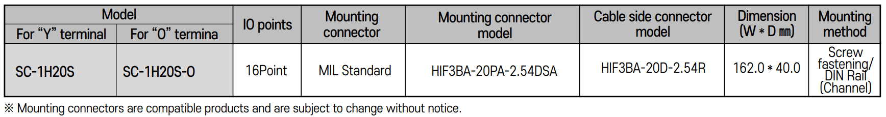 界面端子台(Interface Terminal Block,インターフェース端子台,인터페이스단자대) | SC-1H20S、SC-1H20S-O | SC系列 |