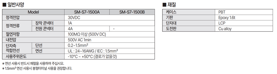 | SM-S7-1500B | 40 | MILStandard | HIF3BA-40PA-2.54DSA or XG4A-4031 | 없음 | DigitalI/O,AnalogI/O용 |