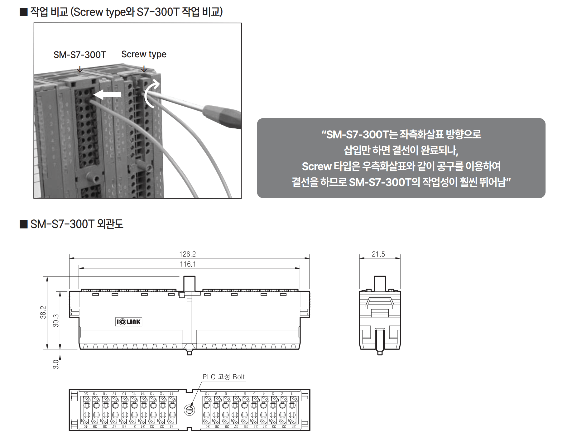 | SM-S7-300T | 40 | Screwless단자대 (Pushtype) | S7-300PLC 40Pin Frontconnector 사용전제품 |