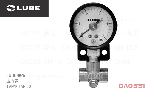 高思(GAOSSI®)专业供应日本鲁布(Lube ,リューベ)品牌压力表(圧力計,Puressure gauge)TAF型TAF-7、TAF-15、TAF-50等产品。能够目测泵吐出压力正常或异常。应用于机床、冲床、注塑机、机械设备、生产线、机器人等工业自动化领域。