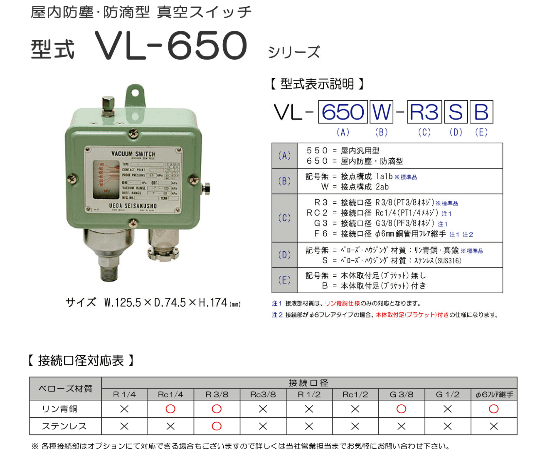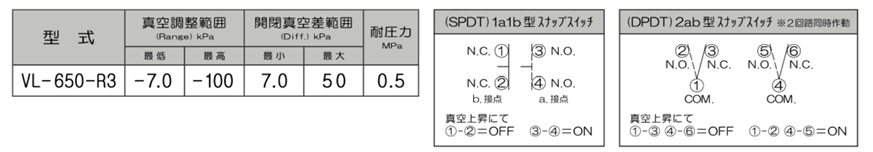 真空开关(真空スイッチ,Vacuum Switch) | VL-650-R3 | VL-650系列 |
