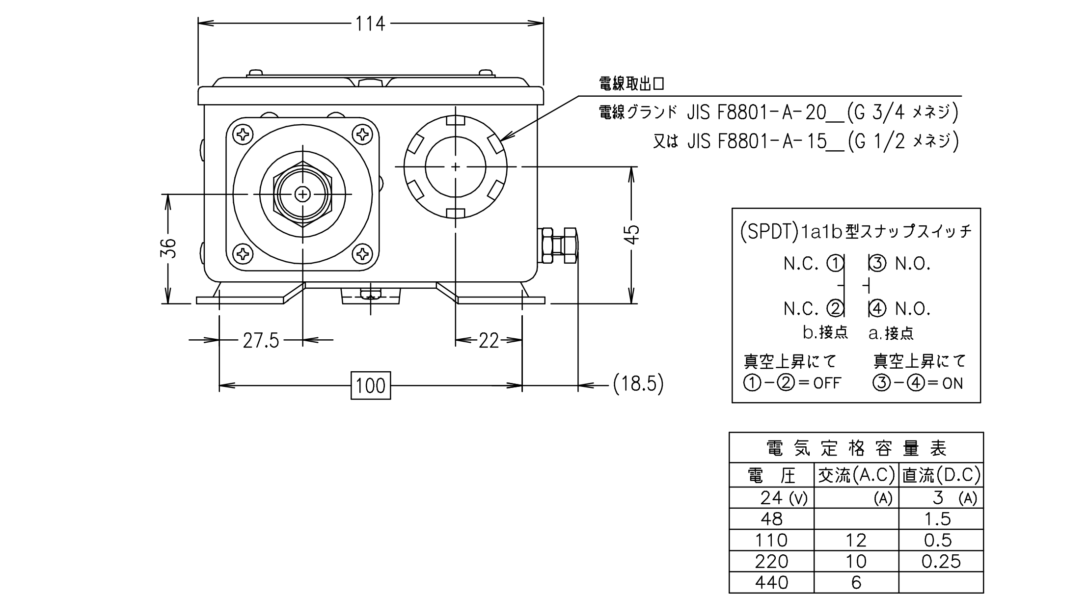 製品名 | 屋内防塵・防滴型 真空スイッチ |