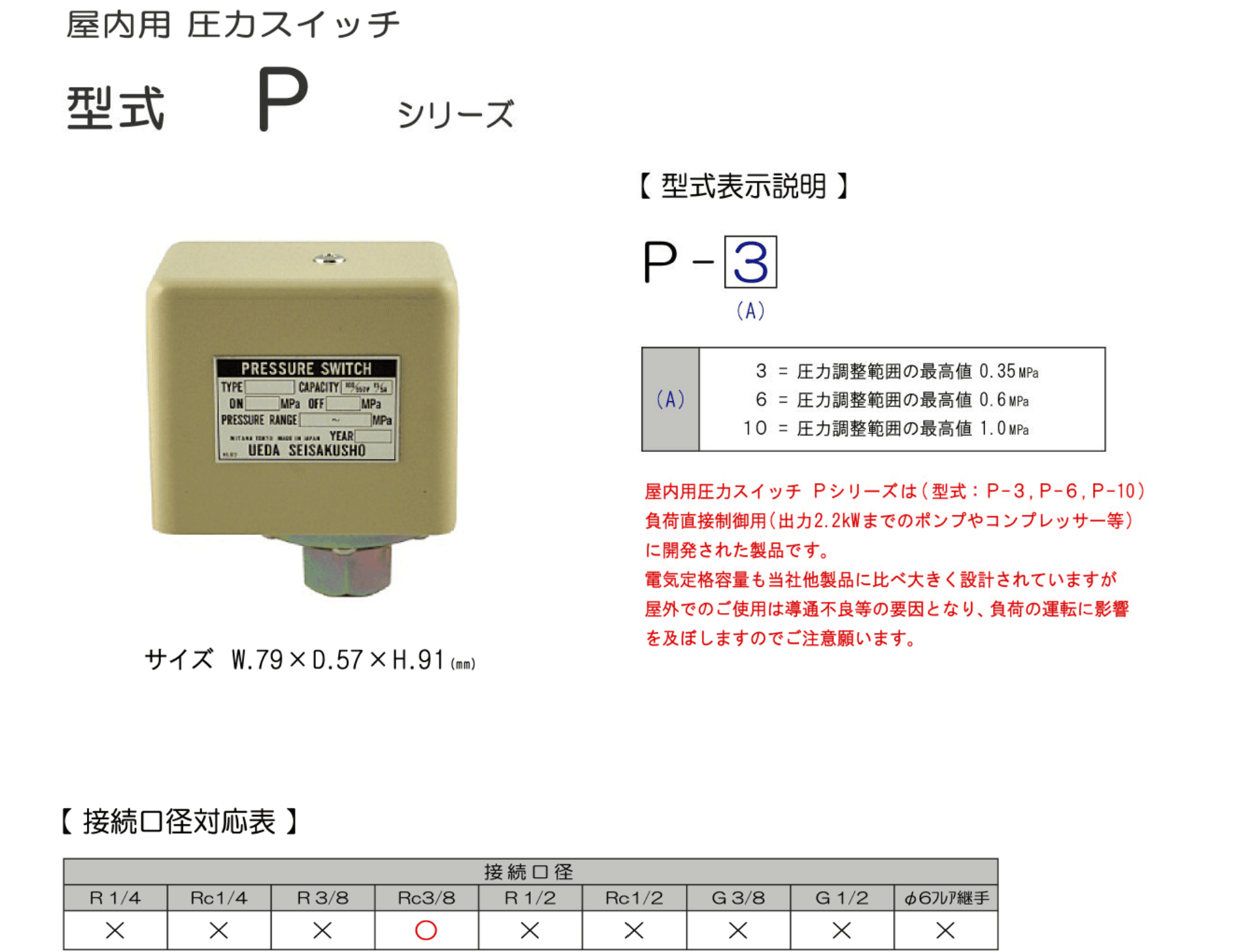 压力开关(圧力スイッチ,Pressure Switch) | P-3、P-6、P-10 | P系列 |