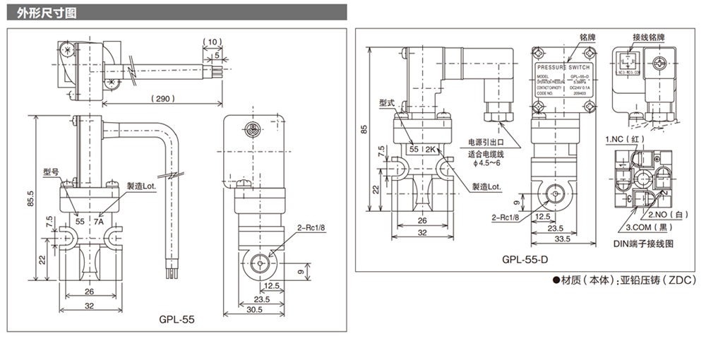 | 压力开关(圧力計,Puressure switch) | GPL-55 | GPL型 |