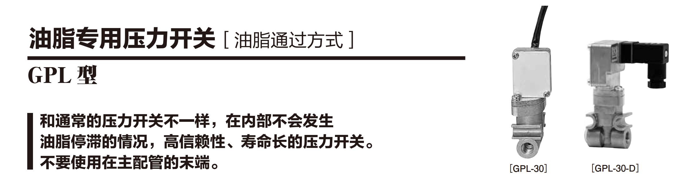 - GPL-30: 无法直接从外观判断压力开关是否动作,需通过 PLC 信号反馈。